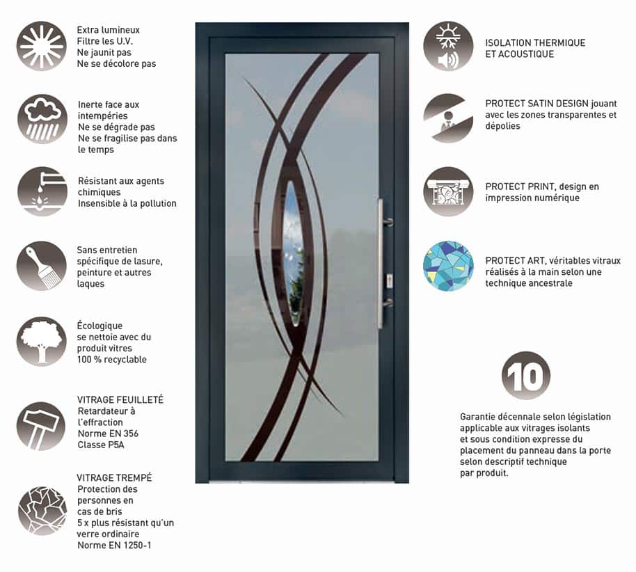 : Le Design + Clarté + Isolation Ug 1.1 et 0.6* + effraction classe P5A + Sécurité verre trempé.